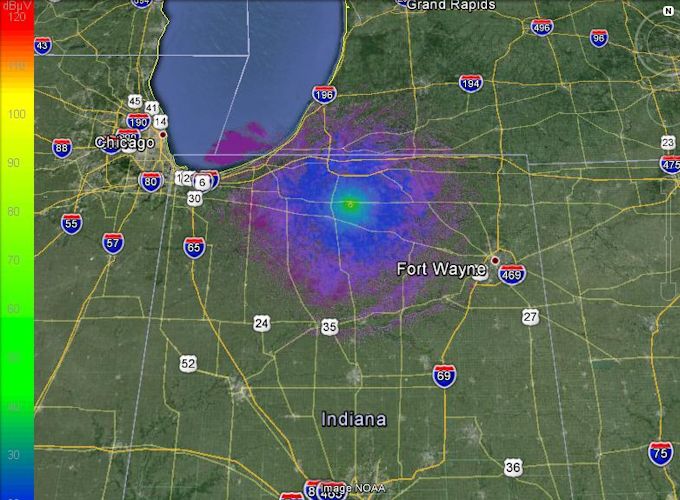 W9LRT Repeater Coverage Map - Wide View